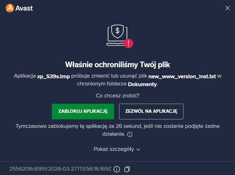 Podczas instalowania aktualizacji programy antywirusowe mogą zgłosić, że uważają któryś z plików za niebezpieczny. Oto przykład takiej reakcji: